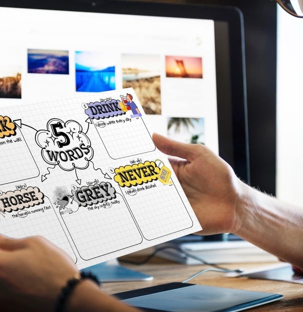 Nosso cérebro processa imagens muito mais rápido do que palavras. Segundo o estudo de Paivio sobre o Picture Superiority Effect, associar palavras a imagens aumenta significativamente a retenção e facilita a lembrança do vocabulário no dia a dia.